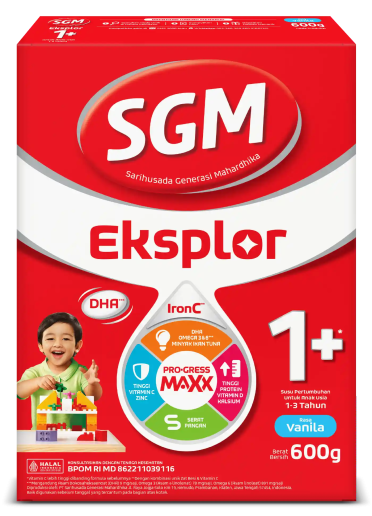 SGM Eksplor Aktif 1+ Pro-gress Maxx dengan kombinasi unik Zat Besi & Vitamin C, IronC membantu penyerapan maksimal nutrisi penting yang dibutuhkan si Kecil, seperti Minyak Ikan, Omega 3 & 6, Kalsium serta nutrisi penting lainnya. Pastikan si Kecil mendapatkan stimulasi yang tepat & nutrisi lengkap untuk mendukung 5 Potensi Prestasi Anak Generasi Maju: Berpikir Cepat, Gigih, Percaya Diri, Tumbuh Tinggi, dan Aktif Bersosialisasi.